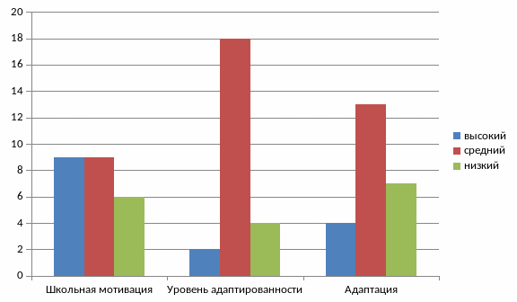 Таким образом, мы видим наличный уровень адаптации у детей первого класса.