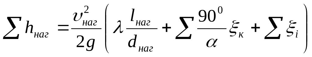 lнаг. – суммарная длина всех прямолинейных участков нагнетательного трубопровода;