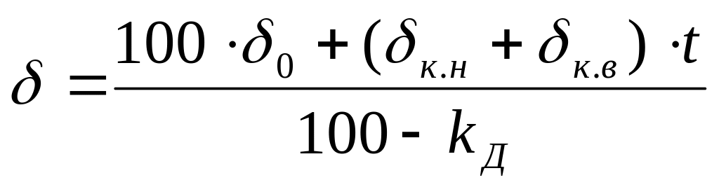 kд= 10— 15 — коэффициент, учитывающий минусовый допуск толщины стенки, %.