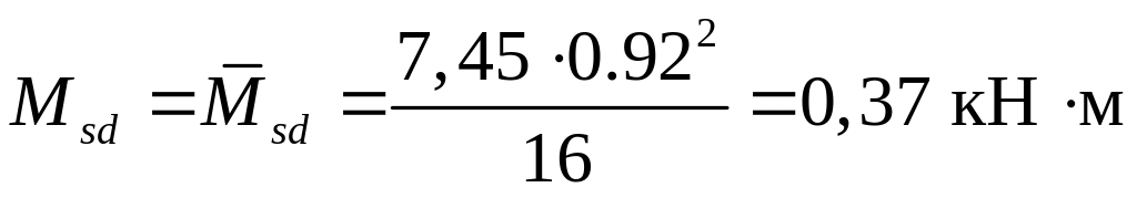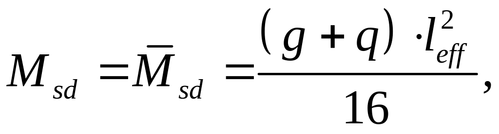 Изгибающие моменты в пролёте и на опорах определяем по формуле 2.1: