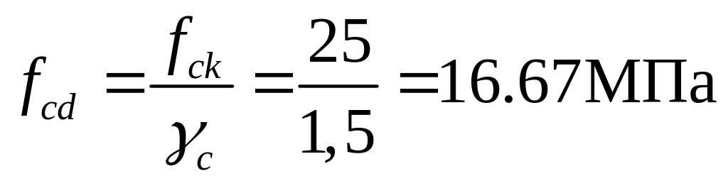 где α – коэффициент, учитывающий длительное действие нагрузки, неблагоприятный способ её приложения и принимаемый для тяжёлого бетона класса по прочности на сжатие не более С50/60 равным 1,0.