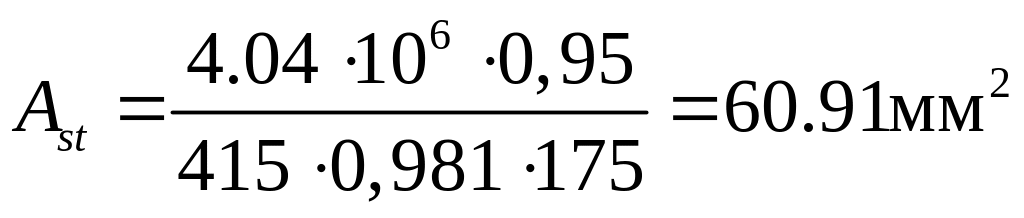 Находим величину требуемой площади растянутой арматуры по формуле 4.7.