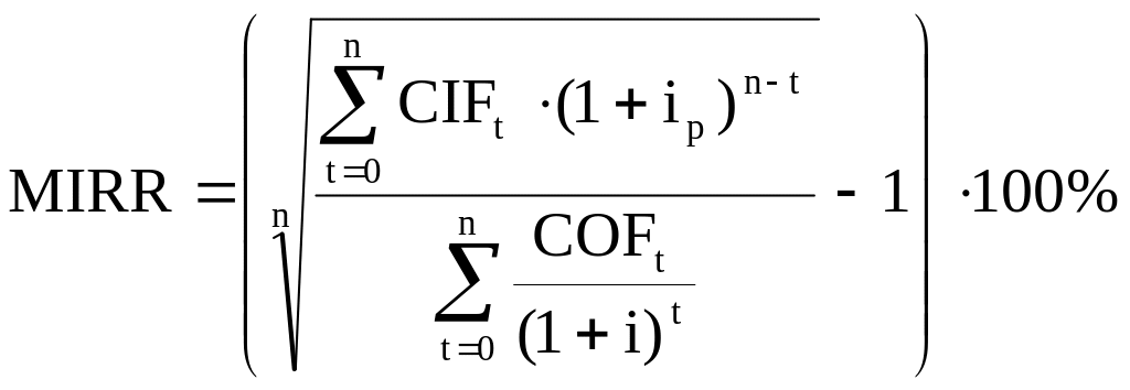 MIRR (modified internal rate of return) – модифікована внутрішня норма рентабельності;