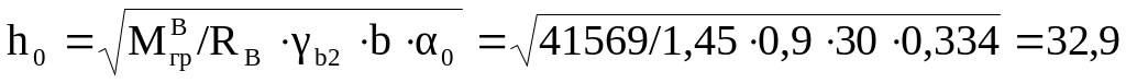 Оставляем h = 0,4 м, h0 = 0,4 – 0,06 = 0,34 м.