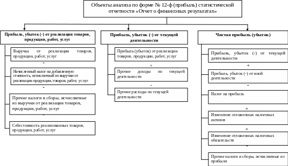 Рисунок 2 Объекты анализа (финансовые результаты) по форме № 12-ф (прибыль) статистической отчетности «Отчет о финансовых результатах».