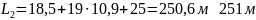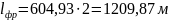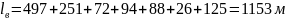 Довжина знаходиться по сумі довжин укладального поїзда, хопер-дозаторних поїздів, виправочного і рихтувального поїздів і інтервалів між ними та між частинами колієукладального поїзда (150 м):
