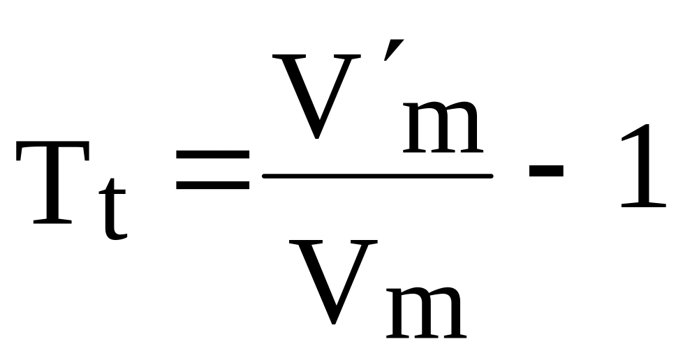 Для определения динамики рынка рассчитывается показатель динамики рынка (Тm) по объемам рынка в конце анализируемого и базисного периодов (V'm и Vm) и длительности периода (t) используется формула