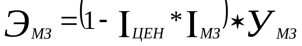 где Iцен – индекс изменения цен; Iмз – индекс изменения материальных затрат; Умз – удельный вес материальных затрат в себестоимости продукции, %.