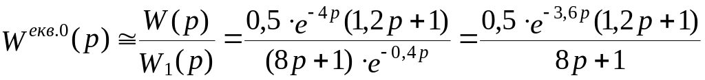 Знаходять приблизну передаточну функцію еквівалентного об’єкта допоміжного регулятора W1екв.0(р) за вираженням (1.4)
