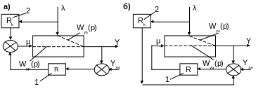 Існує дві структурні схеми комбінованих систем регулювання (рис. 2.1), які відрізняються одна від одної місцем підключення виходу компенсатора (регулятора розімкнутого контуру).