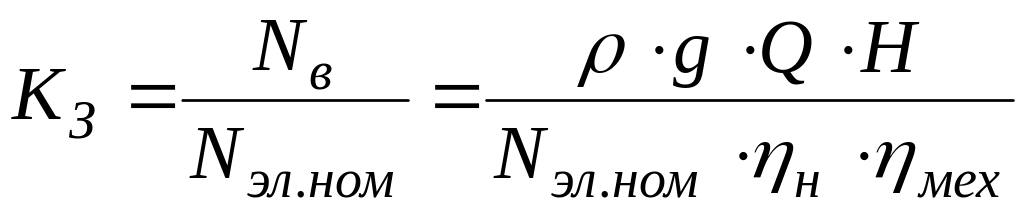 KЗ – коэффициент загрузки электродвигателя, равный отношению мощности на валу электродвигателя Nв к его номинальной мощности Nэл.ном: