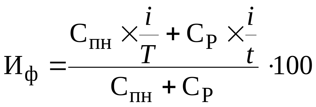 где Иф – степень фактического износа, %; Спн – первоначальная (восстановительная) стоимость детали, руб.; Ср – стоимость ремонта детали, руб.; i – фактический срок службы детали на момент определения степени ее физического износа, лет, ч; i' – фактический срок службы детали после очередного ремонта, лет, ч; t – срок службы детали до ремонта или выбраковки (межремонтный период работы детали), лет, ч; Т – нормативный срок службы детали, лет, ч.
