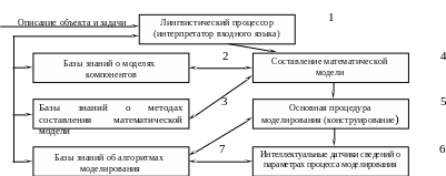 При составлении математической модели базы знаний 2 выдает те же модели компонентов, которые наиболее соответствуют требованиям точности и скорости моделирования с учетом сложности самого объекта. База знаний 3 в соответствии с требованиями выдает способ составления математической модели объекта.