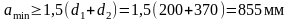 Розрахуємо мінімальну міжвісьову відстань: