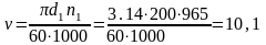 де ξ – коефіцієнт пружного ковзання, приймаємо для гумотканевих пасів рівним 0,01…0,02.
