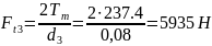де Ft3 – колова сила що діє на зірочку; Ft3=5935Н