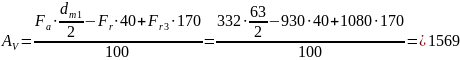 Fr – радіальна сила зубчатого зачеплення; Fr=332Н