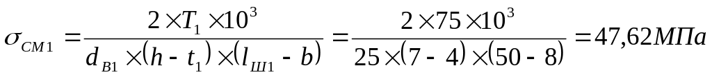 9.1 Шпоночное соединение на первом валу под шкив ремённой передачи.