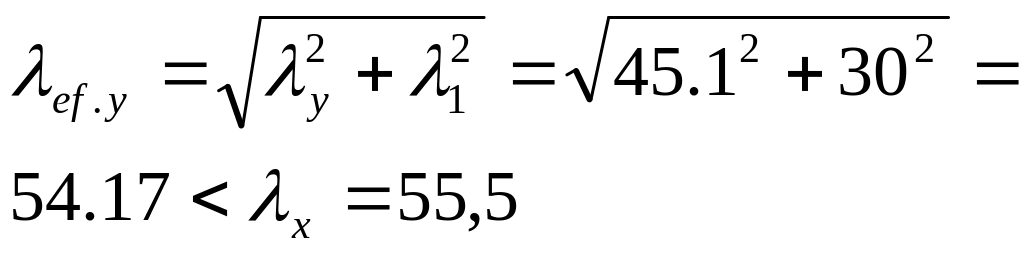 Ширину сечения "b" определяем из условия равноустойчивости стержня (λx=λef.y), используя зависимости: ix=αx∙h; iy=αy∙b; где αx=0,38 и αy =0,44 для сечения из двух швеллеров.