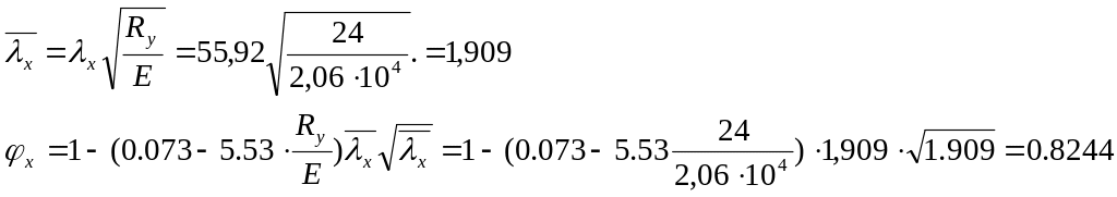 Определяем требуемую площадь сечения колонны, принимая в первом приближении гибкость λх = 55, которой соответствует (по табл. 72 СНиП [1]) коэффициент продольного изгиба φх = 0,828
