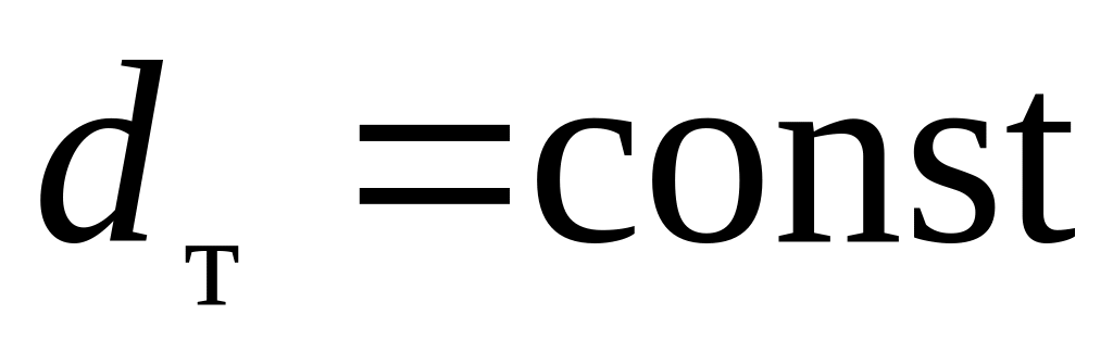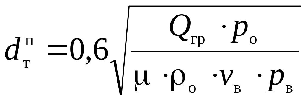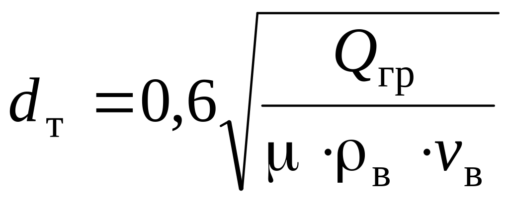 2) Диаметр трубопровода в установках с постоянной скоростью и переменным диаметром (уменьшается по длине трассы) определяется по уравнению