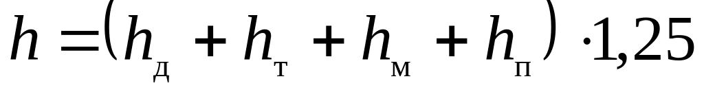 б) Потери давления в местных сопротивлениях можно определять двумя способами. Первый заключается в выражении местных сопротивлений в коленах, переключателях, разгрузителях в эквивалентные длины горизонтальных участков. Тогда расчетная приведенная длина транспортера составит