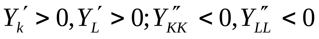 При сделанных предпосылках производственную функцию можно рассматривать