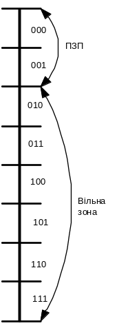 Адресним простором є впорядкована безліч код від що 0. 2n-1 виставляються активним пристроєм на адресних шинах. Тут n – число адресних ліній. Адресною простір визначає число можливих відмінних один від одного кодових комбінацій адрес, які може видавати на шину активний пристрій, але це не означає, що кожній такій комбінації відповідає програмно доступний елемент. Для прикладу розрахуємо адресний простір ЕОМ, що має