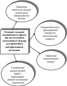 Встановлено, що застосування на практиці принципів логістики дає змогу скоротити на 30–50% рівень матеріальних запасів, на 25–30% – транспортні витрати за рахунок: