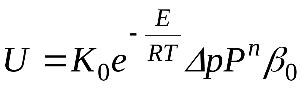 де: р – рушійна сила процесу, виражена у парціальних тисках реагентів; Р – безрозмірний тиск (відношення робочого тиску до нормального атмосферного); п – загальний порядок реакції; 0 – коефіцієнт перерахунку до нормального тиску і температури.