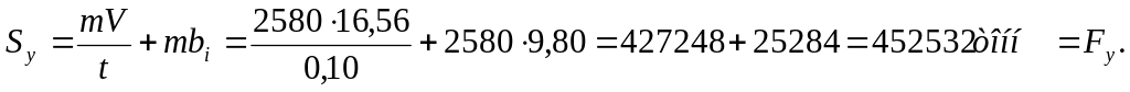 Вполне естественно, что начальная величина ударного импульса, а значит и ударной силы, будет равна суммарной силе сопротивления движению энергоблока 25300+2530+21764=72364тонны, делённой на время удара