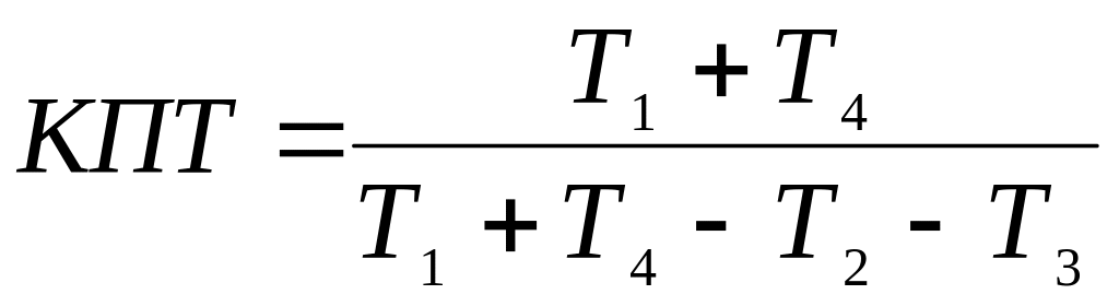 Якщо вважати, що КРТП працює за оборотним циклом Джоуля (дві ізобари + дві адіабати), то отримуємо, що