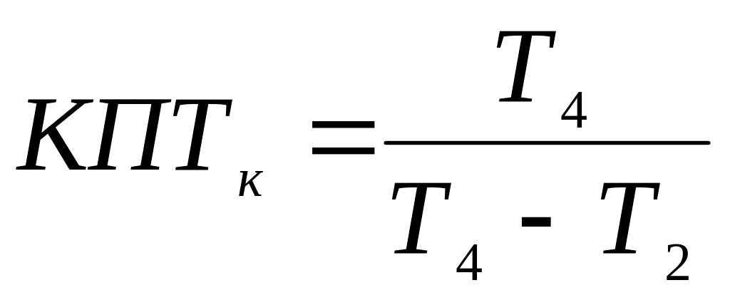 Для парокомпресійної ТП, що працює за зворотним циклом Карно в інтервалі температур Т2 ÷ Т4, отримуємо, див. ( 5.11)