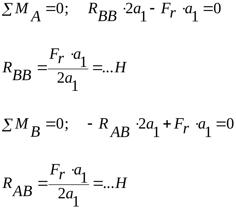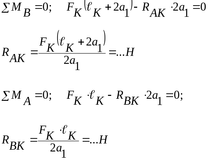 6.13 Определяем реакции опор в горизонтальной плоскости от силы :