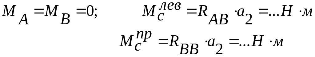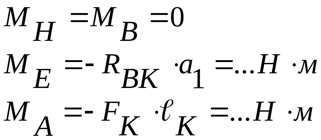 6.14 Определяем координаты эпюры изгибающих моментов в вертикальной плоскости:
