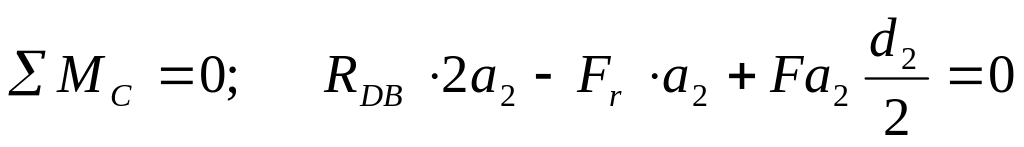 6.12 Определяем реакции в вертикальной плоскости от сил Fr и Fa2