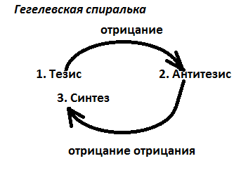 Двойное полное отрицание (отрицание отрицания) представляет собой ситуацию «якобы возврата» к старому: всякое явление превращается в свое отрицание (первая фаза); потом опять происходит отрицание (вторая фаза); в результате третья фаза имеет формальное сходство с первой. Если нет развития, то изменение идет по кругу. При наличии восходящего движения объект возвращается к исходному состоянию, но на другом, более высоком уровне. Поэтому о диалектическом развитии говорят как о движении по спирали.