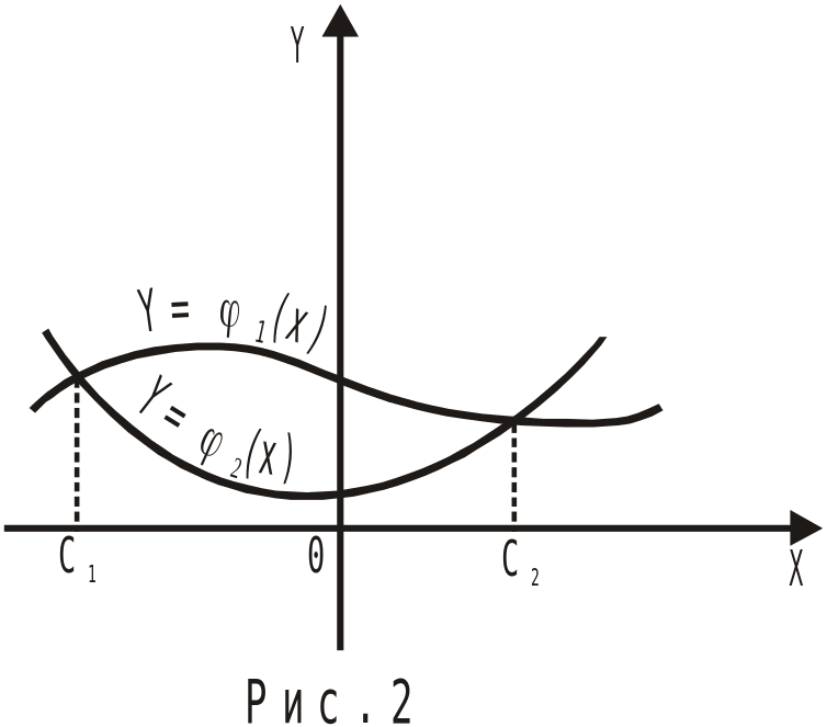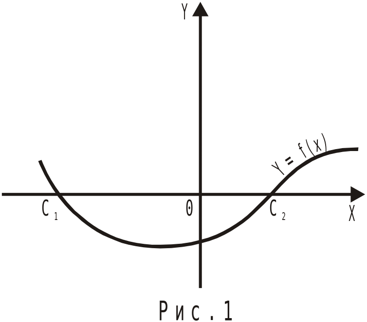 Інколи простіше побудувати ескіз графіка функції , грубо встановити відрізки, що містять корені рівняння (4.1) (точки перетину кривої з віссю Ох), а потім перевірити виконання умов 1-3 (рис.1).
