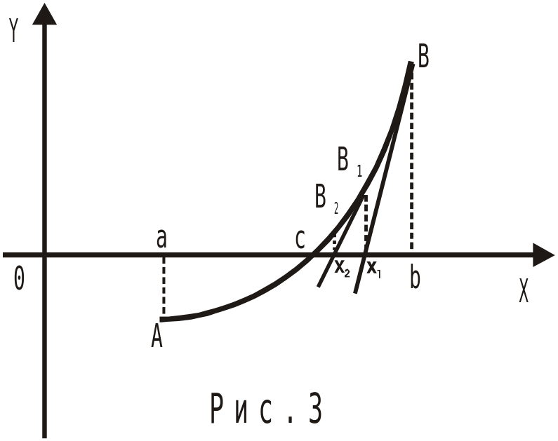на [а; b], дотичні потрібно проводити, починаючи з точки B(b, f(b)) (у формулі (4.2) х0 = b);