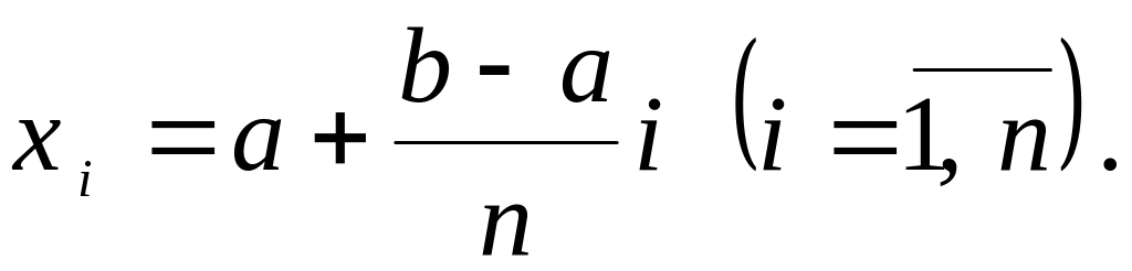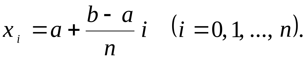 Нехай потрібно обчислити інтеграл (6.1). Проміжок інтегрування [а; b] розіб’ємо на n рівних частин точками