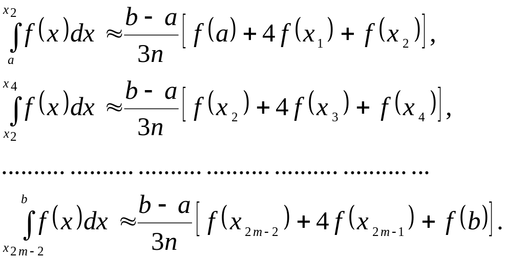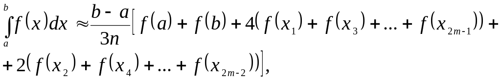 Для виводу цієї квадратурної формули розіб’ємо відрізок [а; b] на парне число n = 2m рівних частин точками