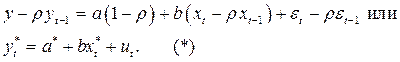 Итерационный процесс продолжается до тех пор, пока разность между предыдущей и последующей оценками ρ не станет по модулю меньше любого наперед заданного числа. После того, как определено значение ρ, строится регрессия по уже знакомой модели:
