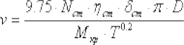 2.Определяют скорость резания, допускаемую режущими свойствами сверла. При сверлении сверлом из быстрорежущей стали скорость резания находят по формуле