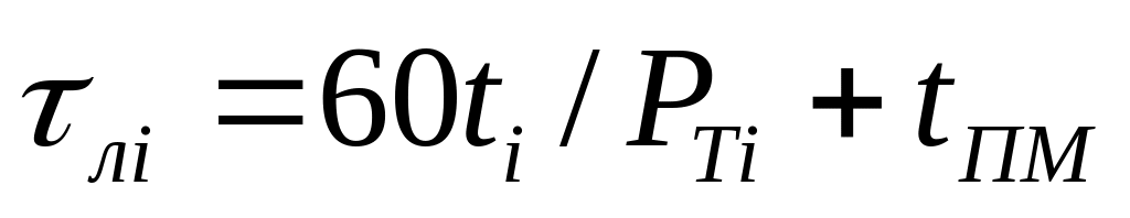 где ti — уточненная расчетная трудоемкость единицы ТО данного вида, чел.-ч; PTi — наибольшее технологически необходимое число рабочих соответствующей зоны ТО в одну смену; tпм — время перемещения автомобиля с поста на пост, мин;