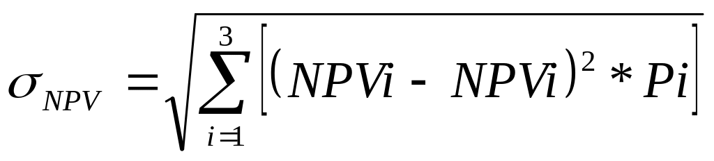 ІІІ. Вірогідні методи застосовуються, коли можливо оцінити кількість варіантів та вірогідність їх здійснення. На основі експертної оцінки в залежності від можливих ризиків по кожному проекту визначають три можливих варіантів розвитку: найгірший; найбільш реальний; оптимістичний. Відповідно розраховують значення чистого приведеного доходу: NPVн (найгірший варіант); NPVр (найбільш реальний варіант); NPVо (оптимістичний варіант). Для кожного проекту розраховується розмах варіації ( NPV R ) – найбільша зміна NPV: NPV R = NPVо – NPVн.