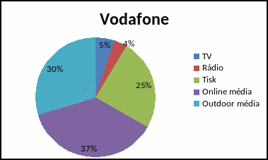 Obrázek4.12 Rozložení mediálních výstupů nového produktu společnosti Vodafone podle typu využitého média. Vlastní tvorba, zdroj dat PR agentura.