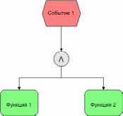 Соединение элементов, если возникновение одного события приводит к выполнению нескольких функций: