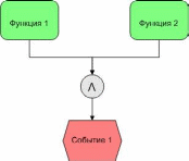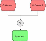 Пример: Клиент приехал в магазин лично (событие 1) или совершил заказ через интернет (событие 2). Необходимо выполнить отгрузку товара (функция 1).