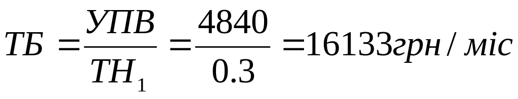 ТН = (Дохід – Змінні витрати)/Змінні витрати = (41167 – 31787)/31787 = 0,3