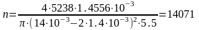 Число труб поверхности нагрева n рассчитывается по формуле
